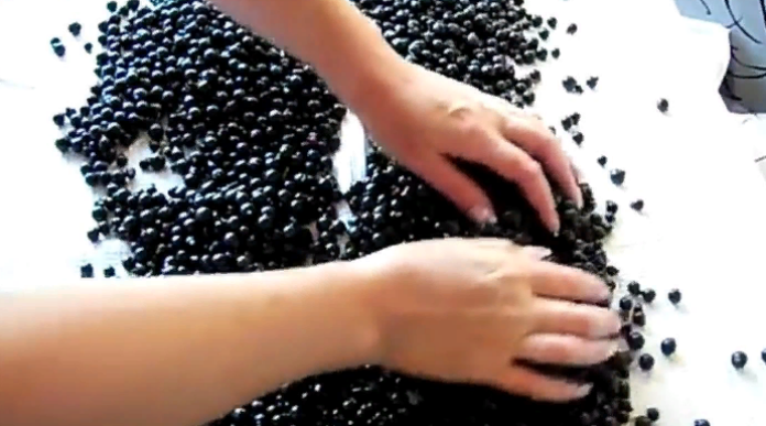 Переберите ягоды, удалите ветки и листья. Ягоды переспелые, а так же недозрелые, не годятся, их нужно выбрать и так же удалить.