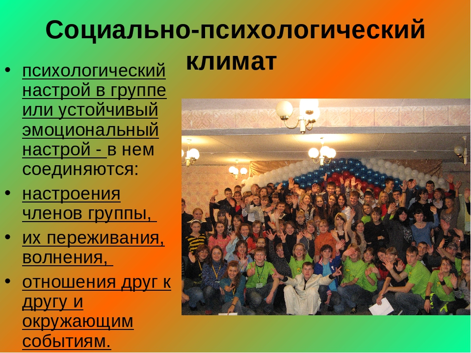 Психологический климат — это состояние коллектива, психологическое и эмоциональное. Он отражает настрой всех сотрудников и их удовлетворенность жизнедеятельностью этого коллектива.