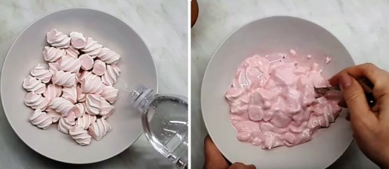 - Залейте маршмеллоу водой и поставьте в микроволновку секунд на 20.