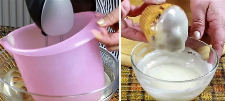 Прежде всего необходимо подготовить подходящую емкость, она обязательно должна быть чистая, так как попадание жира или воды в белок, будет препятствовать образованию крутой пены. Перед приготовлением миску для глазури можно протереть долькой лимона, он удалит излишки жира.