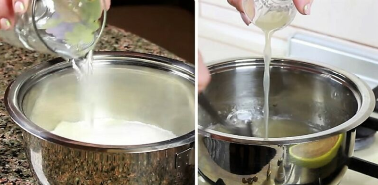 - Добавьте сок лимона и подержите на огне еще три минуты, сироп следует непрерывно мешать.
