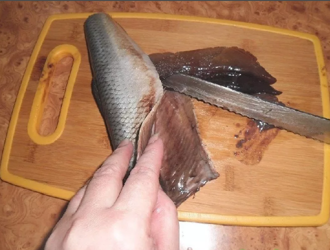 Еще один способ — накрыть доску пергаментной бумагой или пищевой пленкой. Нож тоже имеет не маловажное значение, он должен быть длинным, узким и острым, чтобы с легкостью избавиться от плавников и кожи.