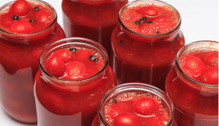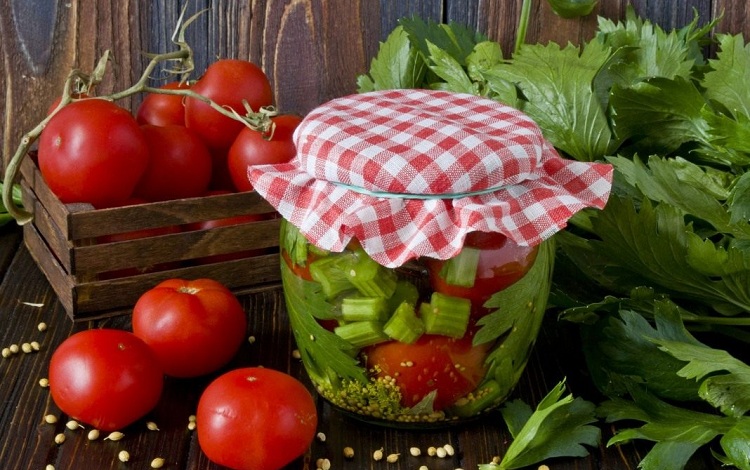 Следует учесть будущее место хранения. Если оно будет комнатным, закатку необходимо укрывать чем-то теплым, стоит так она до полного остывания. Так же и с посудой. При хранении в квартире нужно предварительно ее прожарить в духовке. Закладку томатов проводить в уже охлажденную посуду. Крышечки необходимо прокипятить минимум 5 минут.