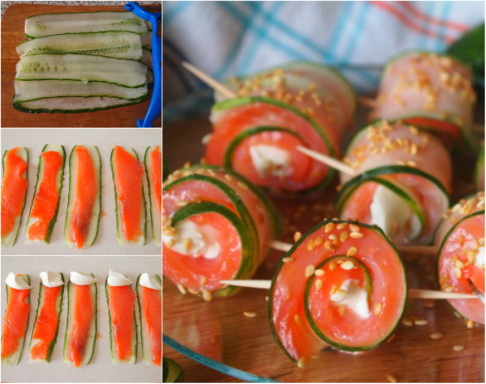 Рулетики из огурца  семгой