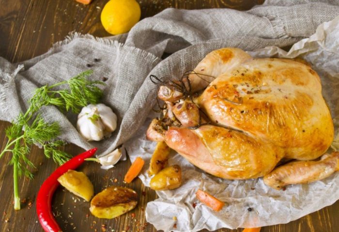 ВАЖНО: При таком способе запекания соль не прилипает к куриной тушке. Мясо получается сочным и ароматным.