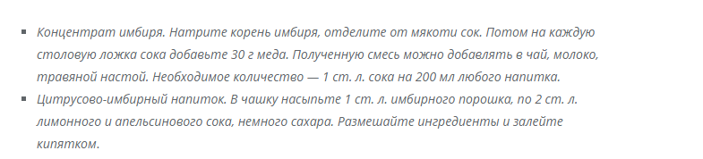 При первых признаках простуды желательно пить имбирный чай с лимоном. Или можно воспользоваться такими рецептами: