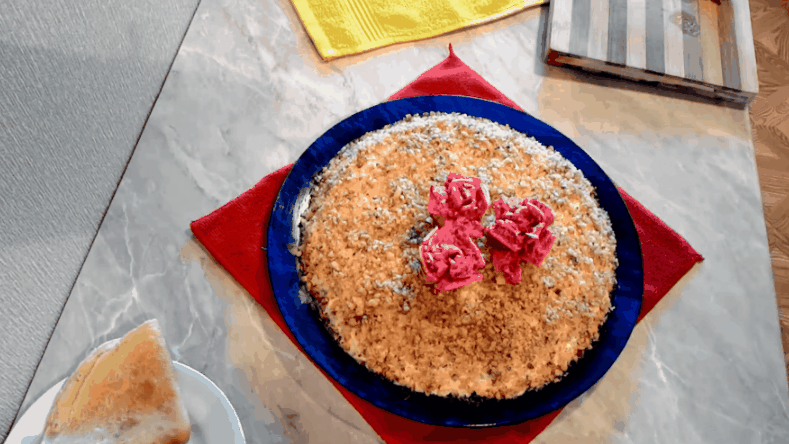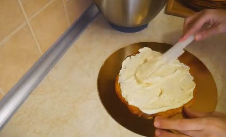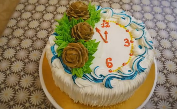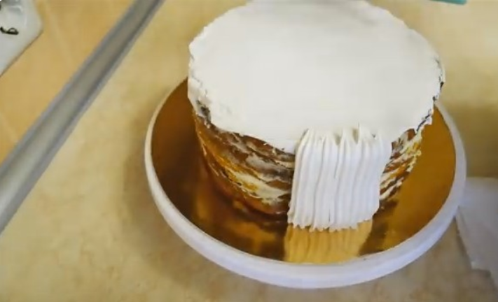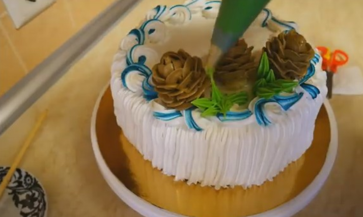 Смазать коржи кремом. Украсить верх и бока с помощью насадки..