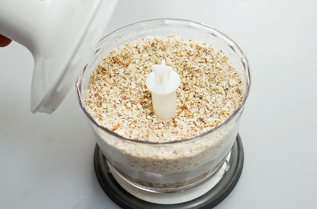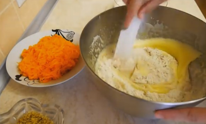 Морковь натереть на терке (крупной), миндаль перемолоть в блендере.Смешать в миске.
