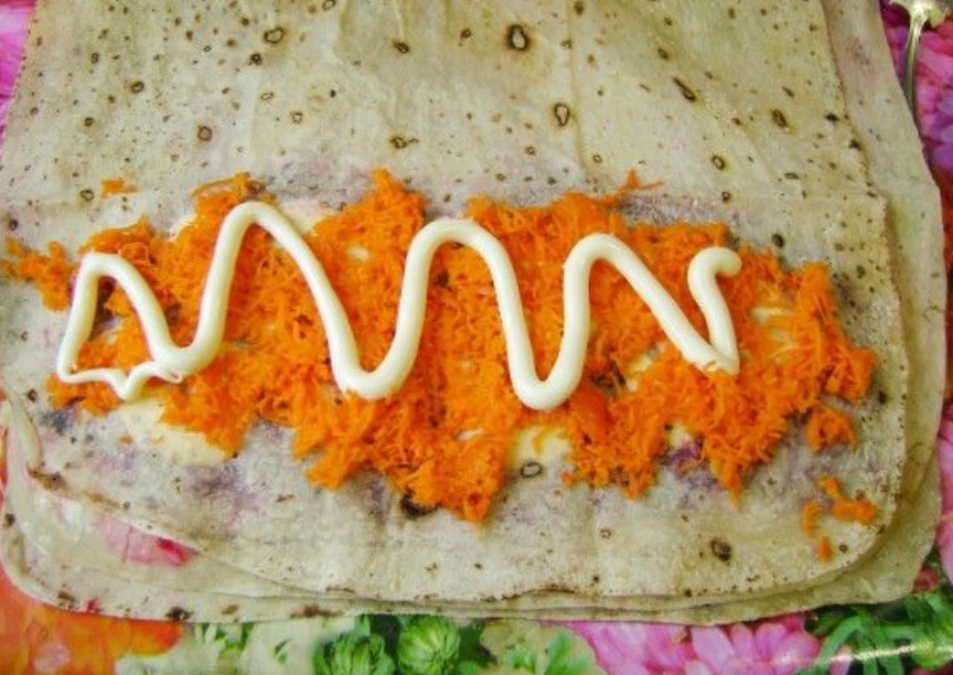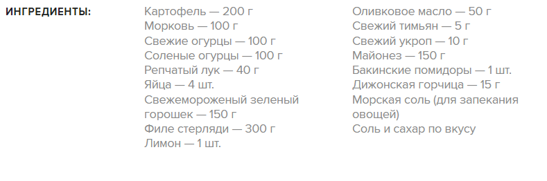 Морковь и картофель оборачиваем в фольгу и запекаем с добавлением оливкового масла, веточек свежего тимьяна, морской соли, в течении 1-го часа, при температуре духовки 160 гр. Овощи чистим, режем кубиками. Яйца, сваренные вкрутую рубим ножом. Горошек заливаем кипятком на одну минуту, добавляем по 50 гр. сахара и соли, рассчитывая на 1 литр, затем промываем под прохладной водой.