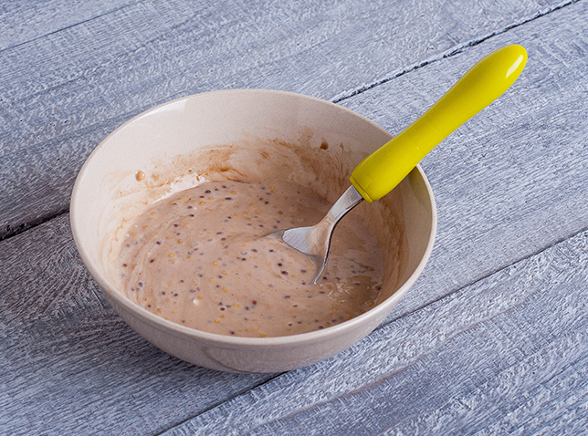 Запекать в виде лепешек при t 180 гр., средней темп., 20 мин.