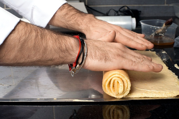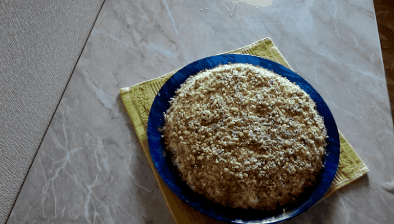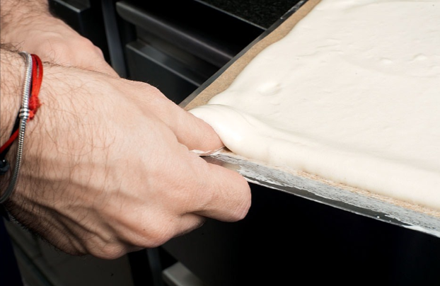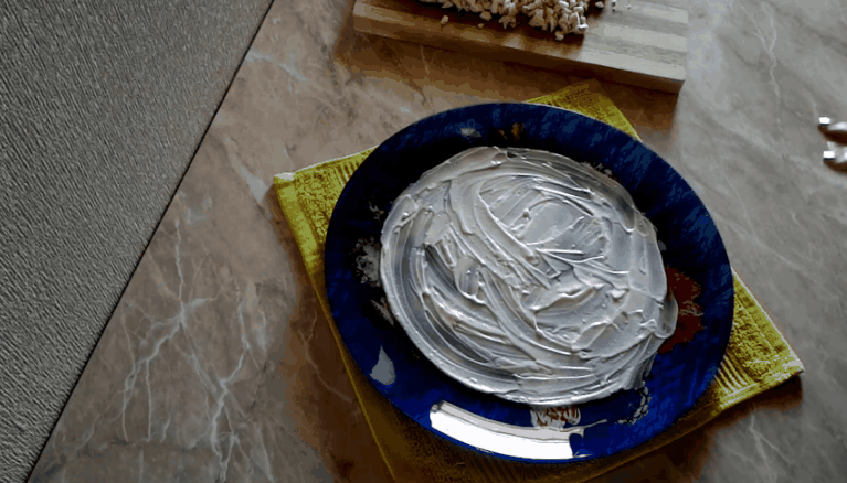 Разложить тесто на пергаменте, толщиной 1 см. Выпекать при t 190 гр., пять минут. Затем накрыть пленкой и поставить остывать.