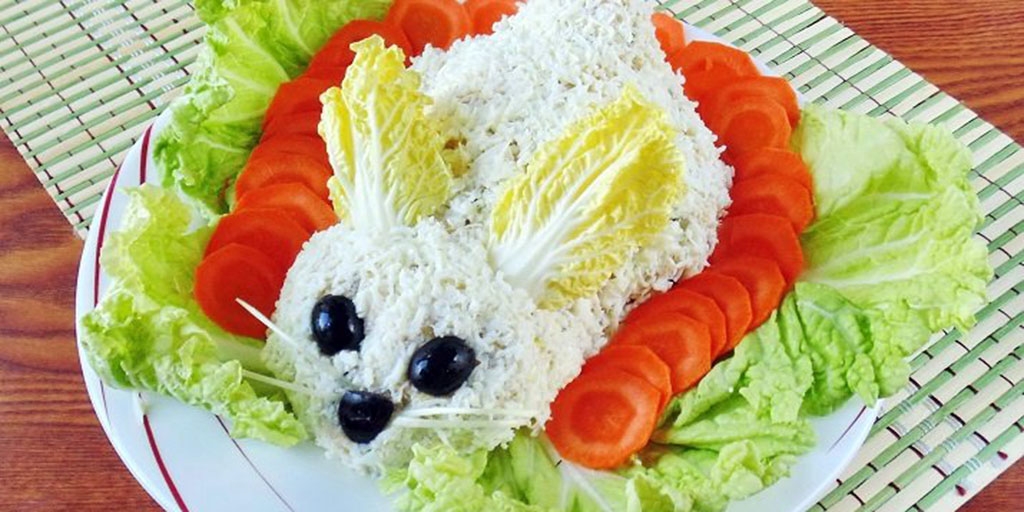 Новый 2023 год встречайте в кругу семьи, так как это животное достаточно консервативное, любящее уют и тепло. Используйте натуральные материалы — скатерть из хлопка или льна, деревянные салатники, подсвечники из кованного металла. Стол должен стоять в центре комнаты с обязательным угощением для Кролика, капуста и морковь фавориты . Постарайтесь составить меню таким образом, чтобы стол «ломился» от яств, но предпочтение отдайте сытным и простым блюдам. Например: