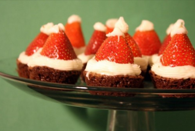 Выдавите на маленькие кексы взбитые сливки, сверху поставьте клубничку, из того же крема сделайте помпончик.