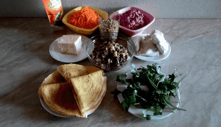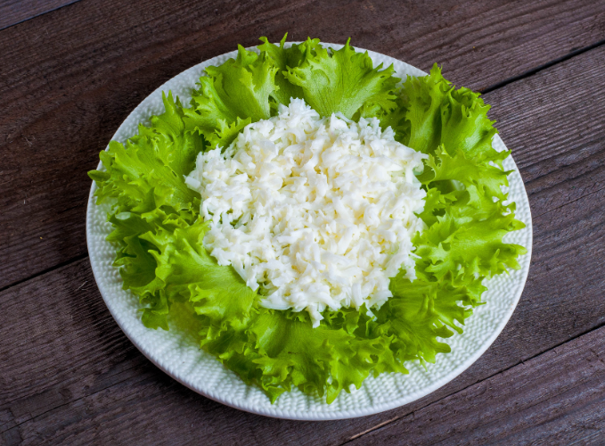 Всеми любимый салат оливье обычно готовят с говяжьим мясом или колбасой, возможны варианты с куриным или индюшачьим мясом.