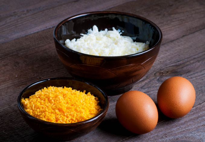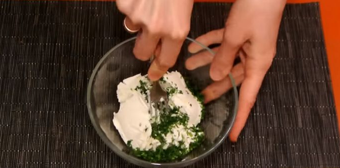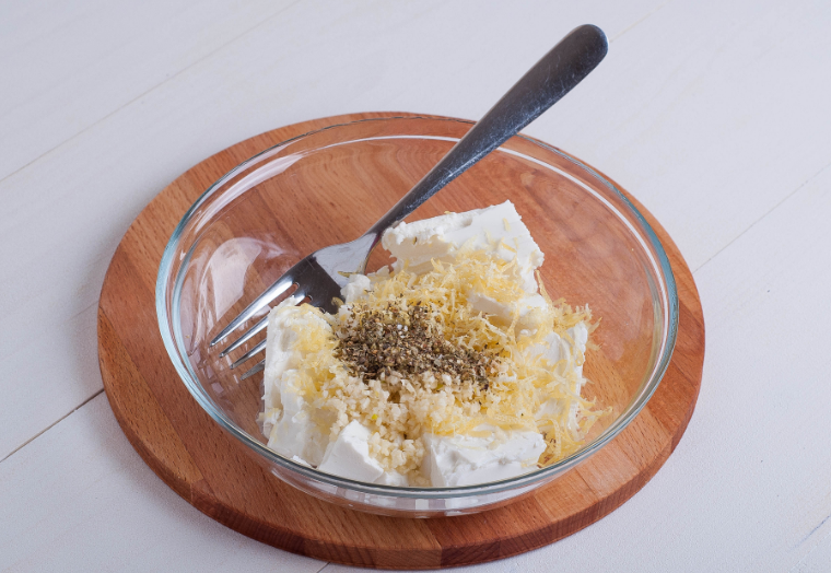 Смешиваем брынзу с цедрой от лимона, молотым перцем и чесноком.