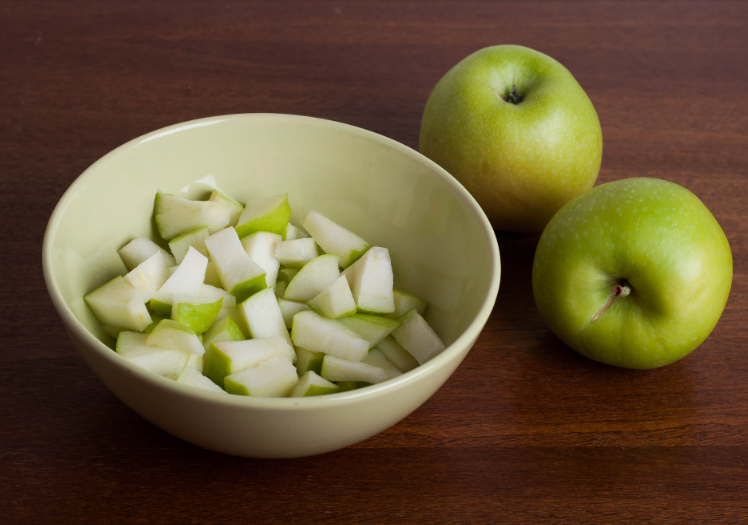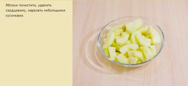 У яблок удалить сердцевину, порезать на мелкие кубики. Сбрызнуть соком от лимона, чтобы не темнели.