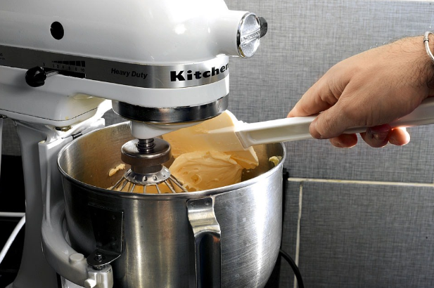 Добавить масло сливочное, взбивать на маленькой скорости. Из стручка ванили достать семена, добавить к взбиваемой массе. Разделить массу на 3 части. Добавить в одну — цедру цитрусов, в 2 другие — пралине. Поставить в холодильник на 30 мин.