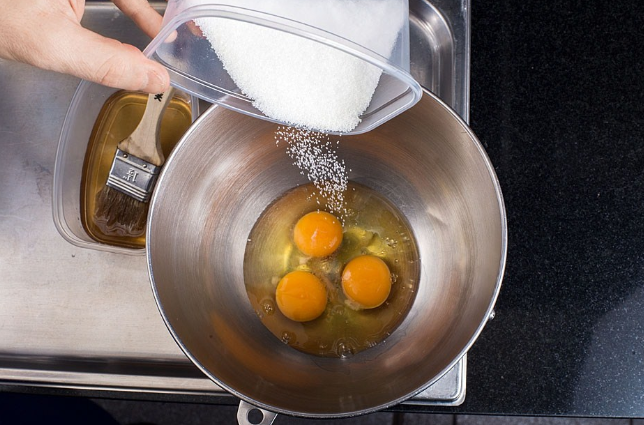 Сахар (80 гр), яйца и сахар ванильный взбить.