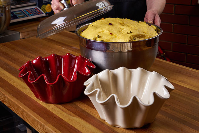 Раскладывание теста по формочкам и последнее расстаивание куличей перед выпечкой. В качестве форм используют емкости из тонкой жести со съемным дном в виде цилиндров. Перед выпеканием следует дно формы выстлать промасленной бумагой, чтобы тесто не прилипало. В последнее время кулинары полюбили силиконовые формы (не нуждаются в смазке) и бумажные одноразовые формочки.