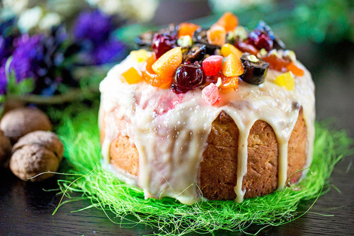 Украшение кулича. Декорировать куличи можно после полного остывания. Для этого используют: взбитый белок с сахаром, шоколадную глазурь, жареные орехи, засахаренные кусочки фруктов, цукаты, ломтики мармелада, сладкую разноцветную крошку или просто сахарную пудру.