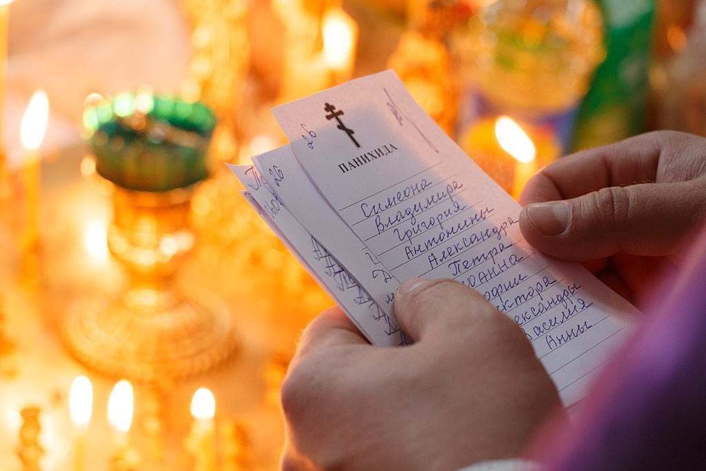В каждом храме можно оставить записку с именем усопшего, о душе которого будет проведена панихида. Если в православном календаре нет имени, которым родители нарекли при жизни ушедшего в мир иной, то укажите то имя, которое было дано ему при крещении. Отдайте эту записку об упокоении в иконную лавку.