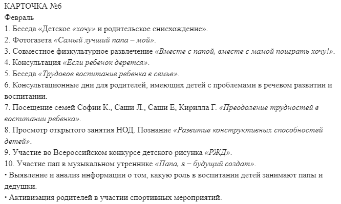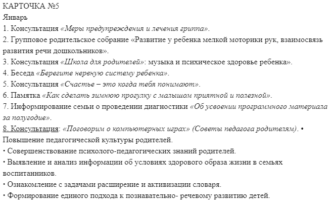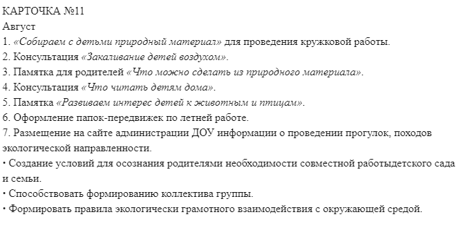 • Визитная карточка — список детей, расписание занятий, описание работы в группе (ежедневное)