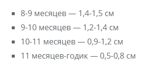 В интервале от шести до восьми месяцев размеры переднего родничка уменьшаются незаметно и до годовалого возраста родничок в среднем имеет такие размеры: