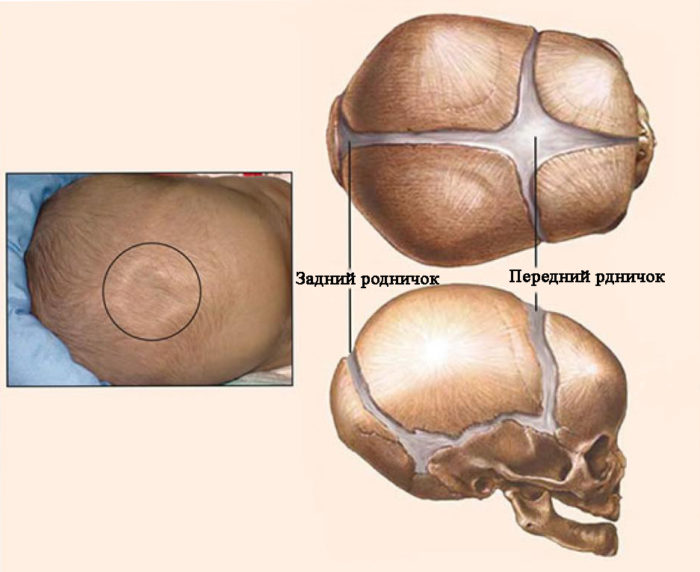Головка плода накануне рождения имеет шесть родничков. Самый большой родничок — передний или большой, располагается в теменной части головки малютки. Вторым по величине считается задний или малый родничок, находящийся в затылочной части. По боковым сторонам черепной коробки расположены небольшие по размеру роднички: сосцевидный и клиновидный, которые к моменту рождения крохи затягиваются или наблюдаются их следы после рождения.