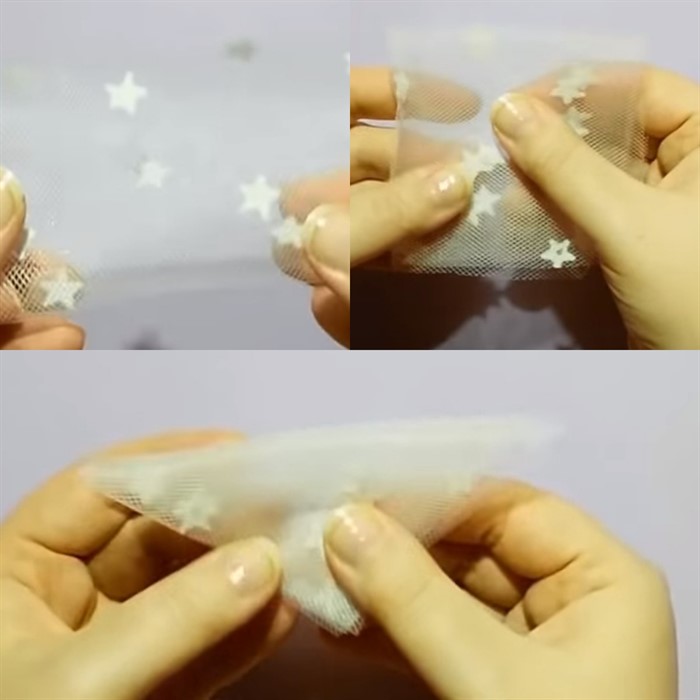 1. Из фатина вырежьте квадрат со стороной 18 см.