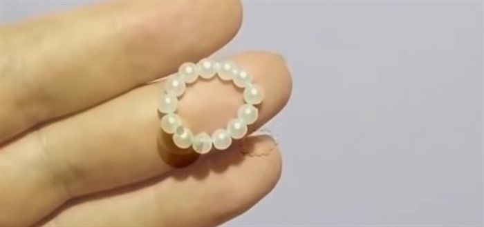 14. На нитку наберите 13 белых бисерин. Концы нитки свяжите.