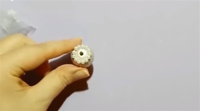 15. Приклейте бисер к верхушке бусины размером 26 мм.