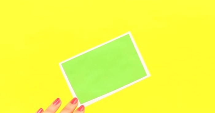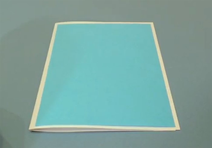 2. Вырежьте прямоугольник цветной бумаги размерами 5х10 см, а белой — прямоугольник 5,5х10,5 см. Склейте между собой. По желанию напишите на бумаге поздравление.