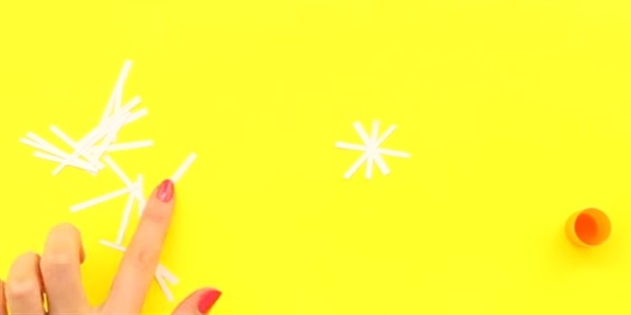 8. Приклеивая полоски крест-накрест, сформируйте снежинки.