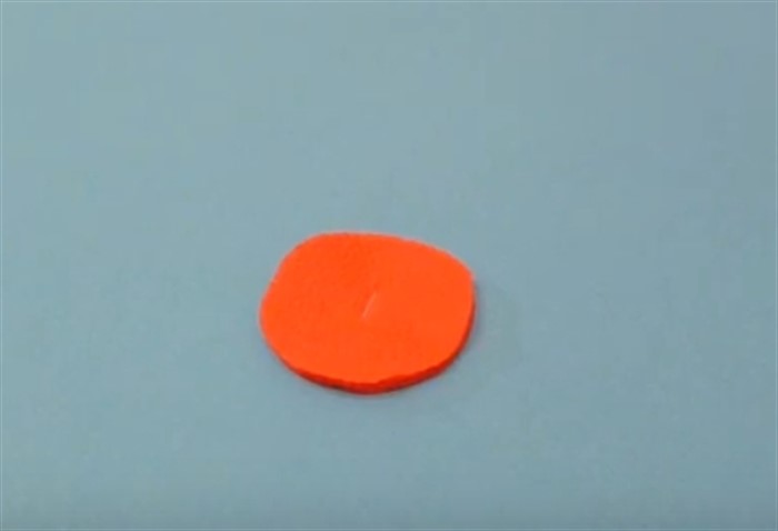 Далее уложите 2 яркие салфетки одна на вторую, циркулем нарисуйте круг диаметром 5 см, вырежьте круг и зафиксируйте его по центру степлером.