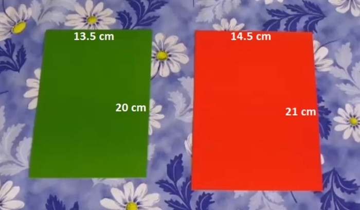Из двухстороннего картона вырежьте 2 заготовки 13,5х20 см и 14,5х21 см.