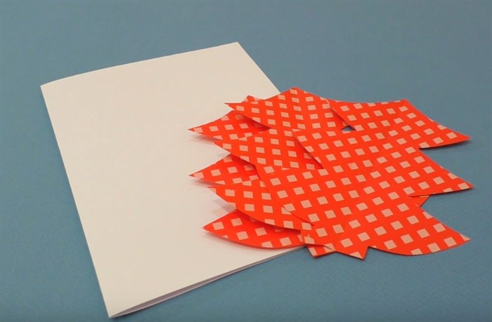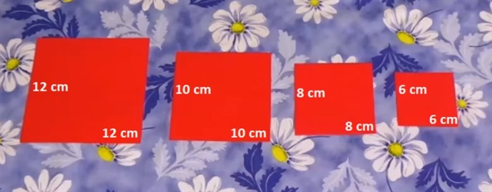 Из красного двухстороннего картона вырежьте следующие квадраты:
