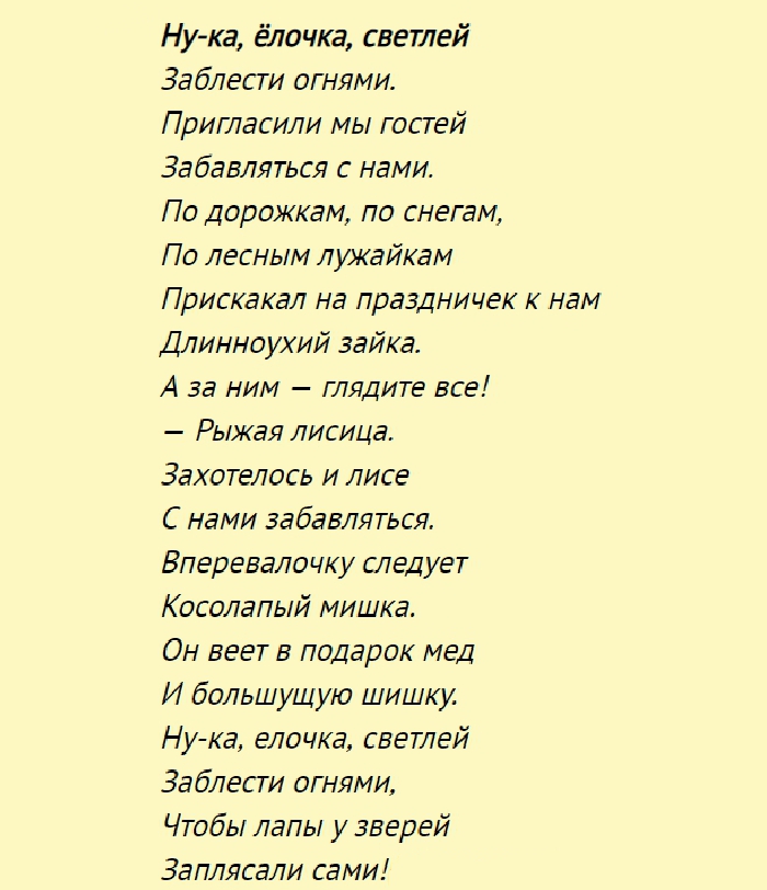 Снегурочка: Елочка, правда, у нас тут красавица. А чтоб она стала еще великолепней, ее нужно зажечь. Ребятки, давайте вместе ее зажжем волшебными словами: «Раз, два, три — елочка наша гори!»