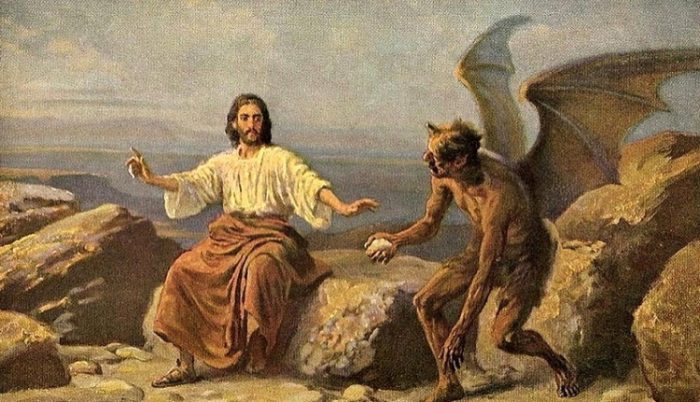 Спаситель голодал 40 дней. Искушаемый Змием, он пробыл там без хлеба и воды.
