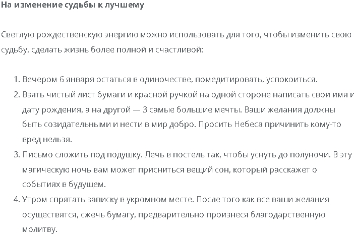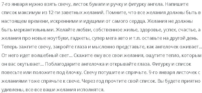P.S. Исполнение желаний зависит в первую очередь от самого человека, если сильно верить, то все обязательно исполниться. Рождество, это лучшее время, не следует упускать такую возможность, которая бывает только раз в году.