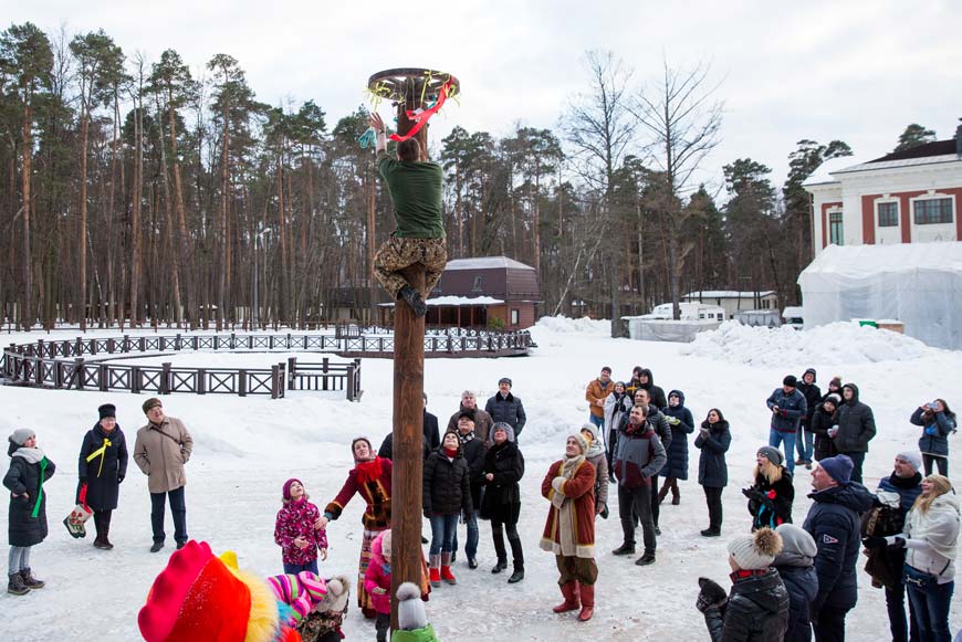 Во время праздника нельзя грустить и скучать. На улицах устраиваются кукольные представления с участием Петрушки, который смешит народ. Все жители в маскарадных одеждах. Женщины одевают русские платки. Молодожены должны всячески показывать свою любовь друг к другу, приветствуются поцелуи на людях. Многие повторяют испытание, которое принято на Крещение — купаются в ледяной проруби. Всю масленичную неделю народ катается с горок ледяных, на санях, запряженных лошадьми, распевают песни, водят хороводы и призывает весну быстрей прийти.