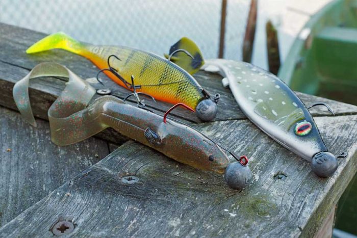 В качестве джига используют разнообразные приманки: твистер, виброхвост, риппер и др. Следует экспериментировать с цветом и формой в каждом случае. Так, при прозрачной воде и ярких солнечных лучах, щука лучше клюет на приманки нейтральных цветов без цветных вкраплений. В мутной воде хищница будет атаковать яркую наживку с кислотной окраской. В летнее время щука малоактивна и соблазнится на небольшие приманки (3-6 см) с активной игрой.
