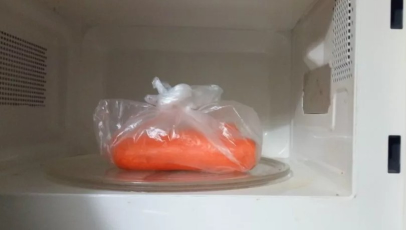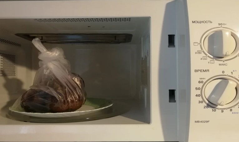 - Упаковать в полиэтиленовый пакет и поставить в микроволновку на 10 минут, на мощность 800.