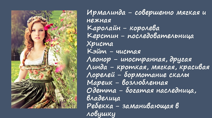 Не смотря на то, что многие имена считаются русскими, некоторые из них имеют греческое, латинское, скандинавское, германское, персидское происхождение. Например, Екатерина имя древнегреческое, его значение — непорочная. Согласитесь, что большинство таких имен давно обосновалось среди русского народа и вряд ли кто-то задумывается о том, что пришли они из других стран. Перед вами список наиболее красивых и редких имен.