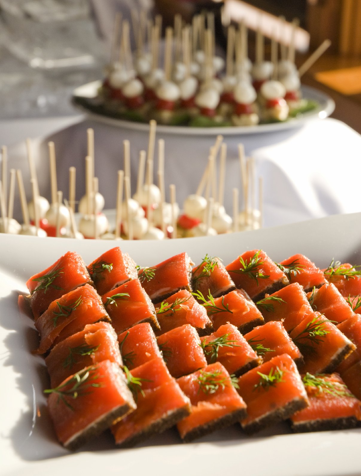 Закуски для фуршета — одно из главных составляющих банкета. К этому пункту стоит подойти с большой долей ответственности. Как известно, довольный народ, это сытый народ. Несколько блюд и напитки дополнят стол и сделают банкет более праздничным. К числу таких относятся легкие закуски из мясных продуктов, фруктов, морепродуктов, сыров различных сортов, миниатюрных пирожных, конфет. Предлагаем меню для корпоративного фуршета: