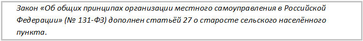 - О создании раздела «Сельский староста» на правительственном сайте.