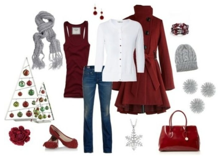 Также в качестве новогоднего аксессуара на фотосессии может выступать палантин в специфическую красную клетку, сумки — новогодние игрушки, тематическая бижутерия.