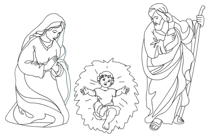 - Дева Мария с младенцем на руках: трафарет