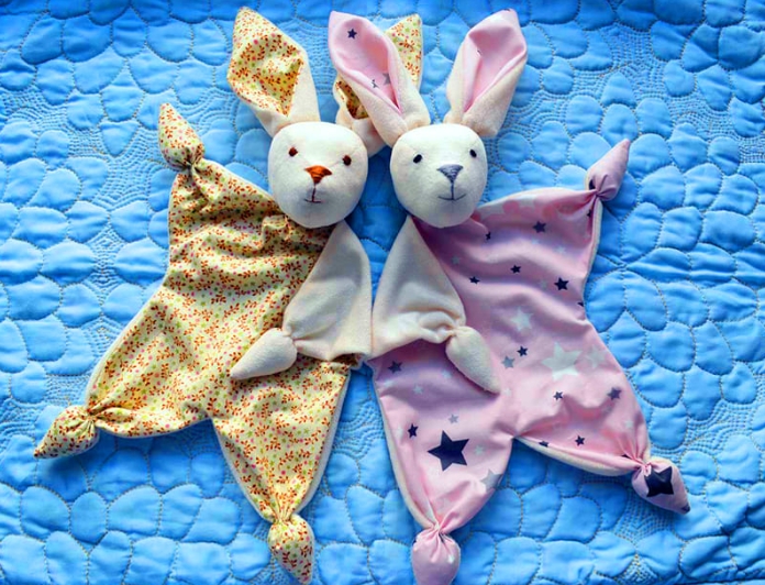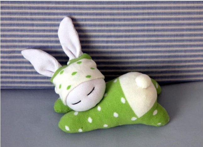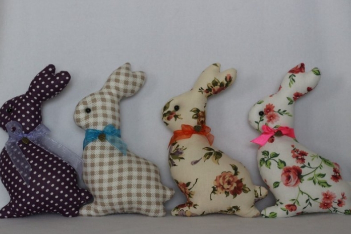В каждом доме найдется какой-либо материал или старые вещи из гардероба, которые планируется выбросить. Отличная идея — нанести на ткань простую выкройку ,силуэт кролика (две детали), вырезать и сшить между собой. Набивкой послужит вата или синтепон.