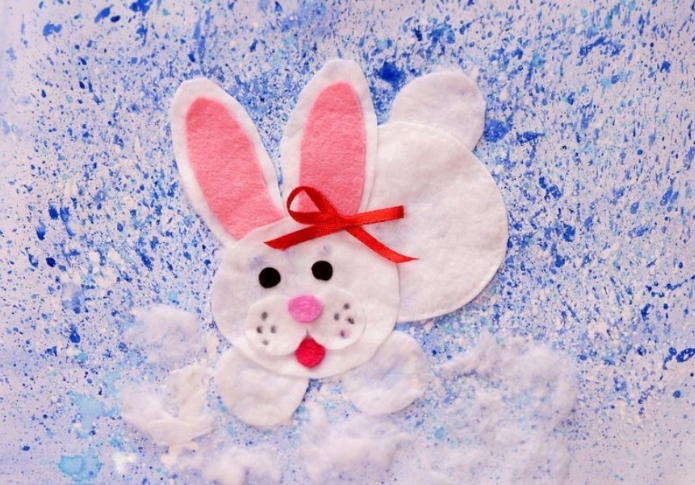 Для аппликации с изображением кролика можно использовать ватные диски.