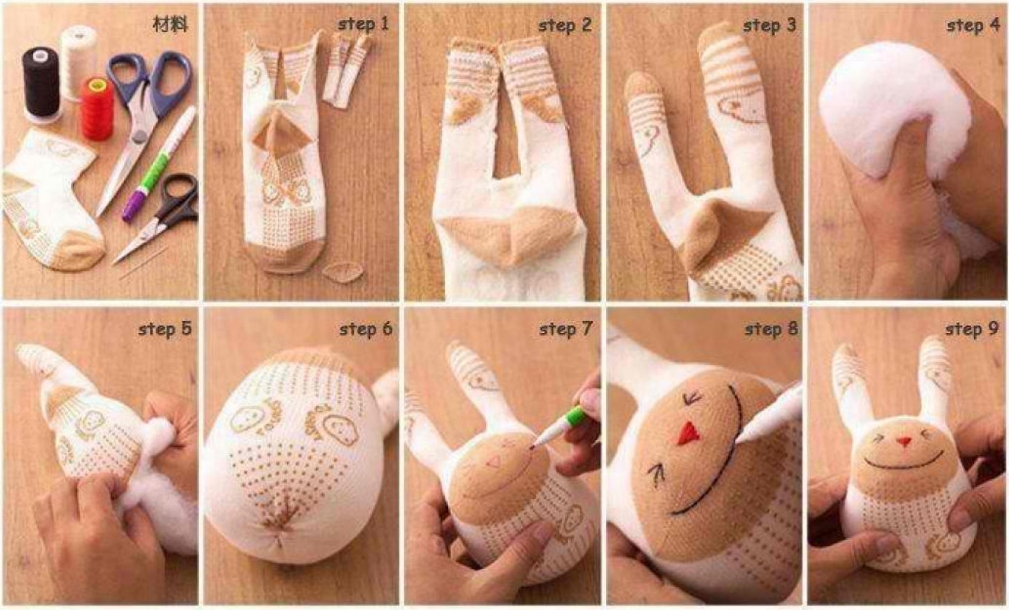 В каждом доме найдется такая вещь, как носки. Можно использовать старые, а можно и купить новые, тем более, что стоят они не так дорого. Существуют разные варианты изготовления кролика из носок. В распространенном варианте носок делят на три части, учитывая, что из одной нужно вырезать уши. Место соединения туловища и головы перетягивают ниткой. Набить игрушку можно ватой, декорировать бантиком или другими элементами.